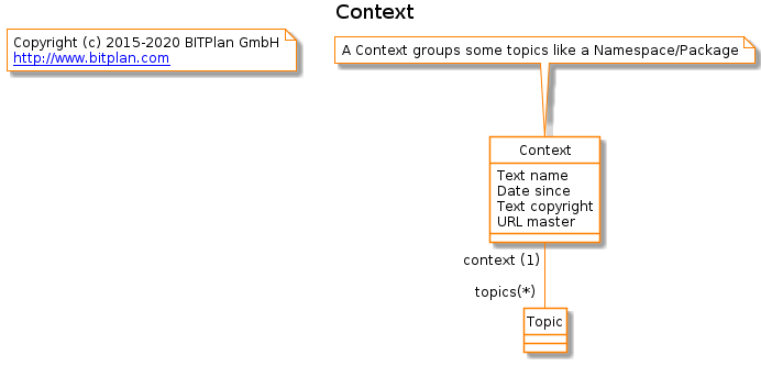 | wikiDocumentation | A Context groups some topics like a Namespace/Package |