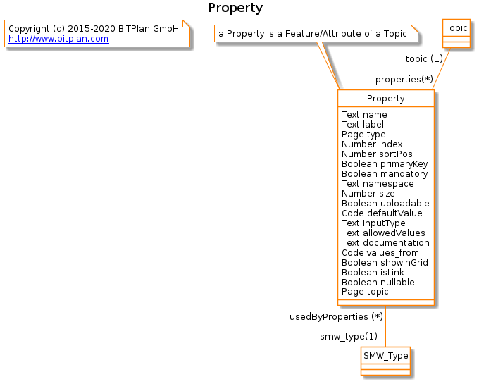 Property isLinkisLinkisLinkTypes/Boolean17falsefalsefalsetrue if this Property is derived form a Link. It will not be exported to SiDIF separately and automatically be added by the Property GeneratorfalseProperty